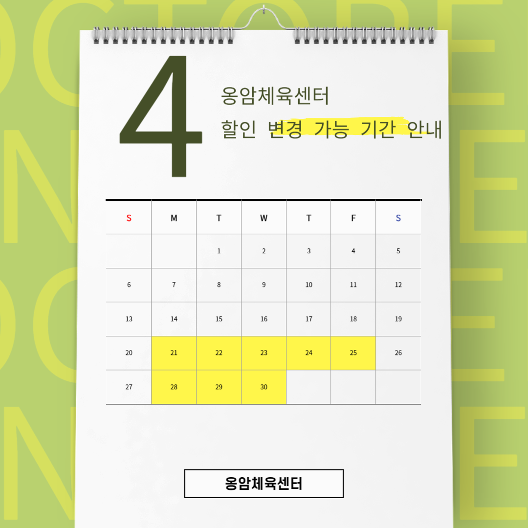 옹암체육센터 5월 프로그램 할인 변경 가능 기간 안내